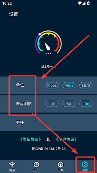 5、设置栏可以对测速单位、表盘刻度等进行设置