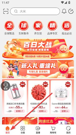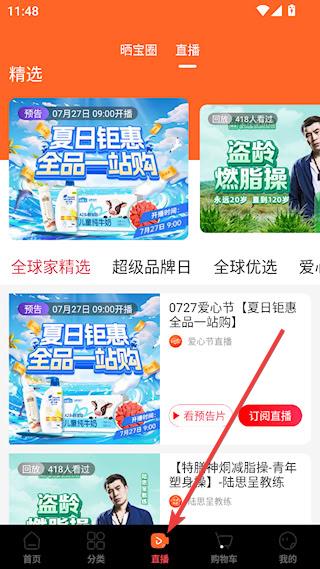1、下载安装后,进入全球家精选APP首页,有各式各样的商品资源