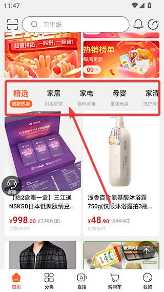 2、点击分类,可获得更丰富详细的商品分类,帮助快速找到需要的商品