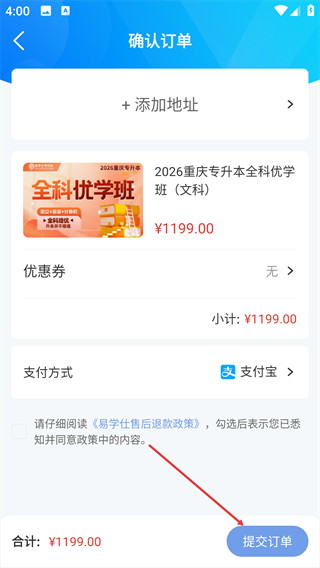 4、在【确认订单】页面,点击【提交订单】按钮,完成课程购买操作。