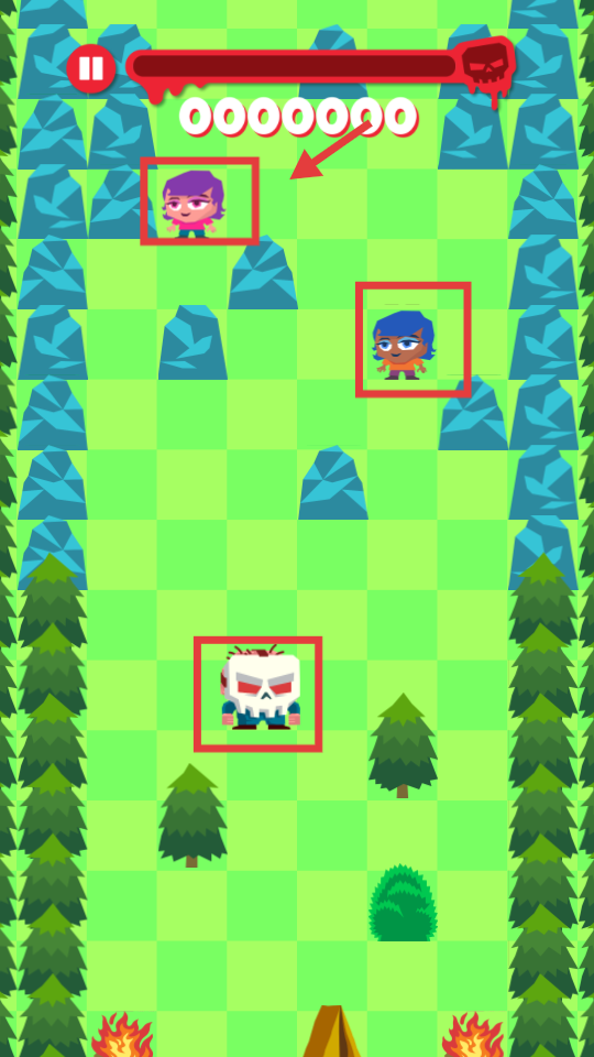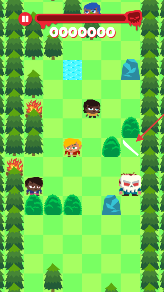 2、看露营者位置,滑动屏幕控制屠夫移动,优先追落单的。