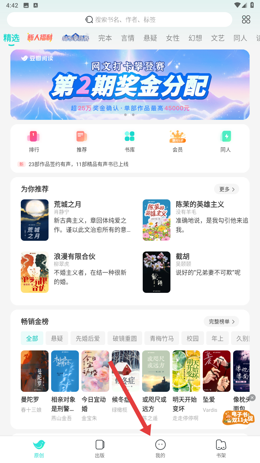 1、下载安装后进入软件,会直接呈现【原创】专栏的页面,可以看到超多优质原创作品