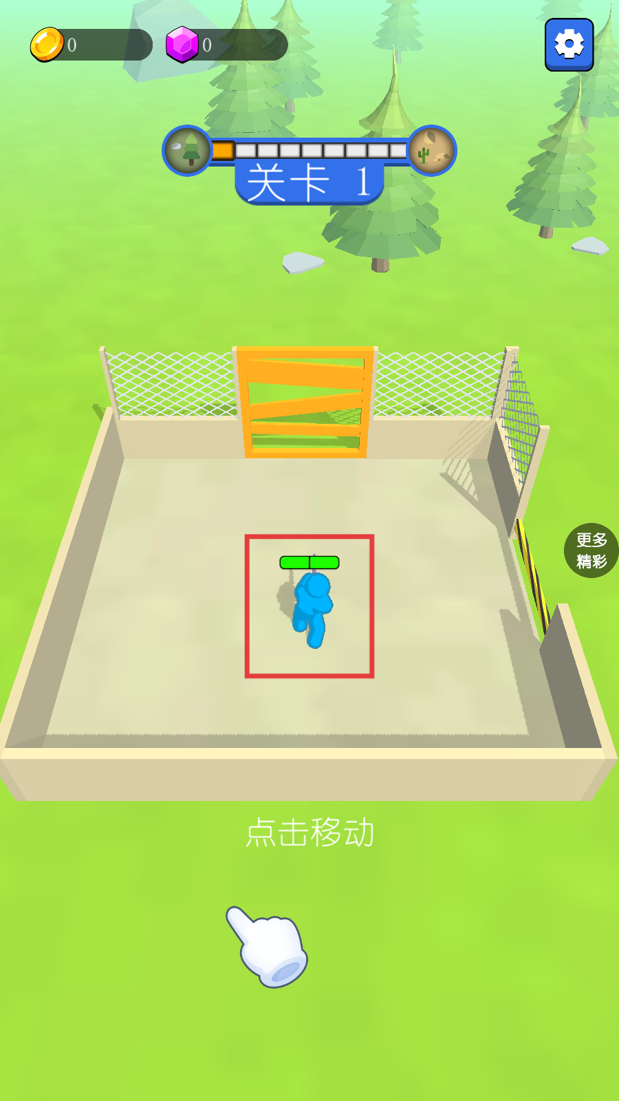 1、进入【关卡1】,滑动屏幕让蓝色角色移动,准备应对后续挑战。