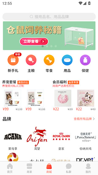 2、设有用品商城,销售高性价比的猫粮、狗粮、宠物玩具、日用洗护、保健医疗、养宠套餐等。