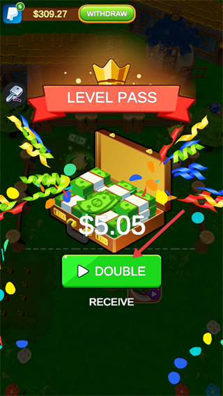 4、关卡通过后,点击【DOUBLE】按钮,可翻倍奖励。