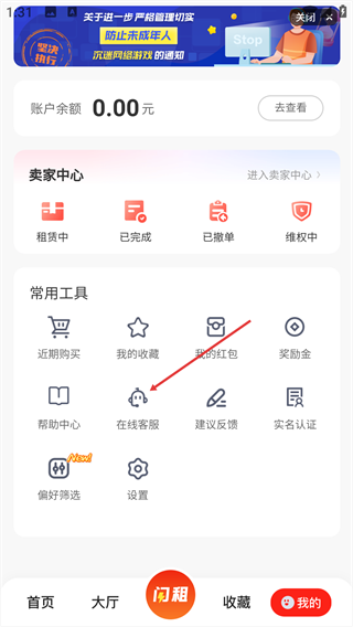 2、在个人中心页面的【常用工具】板块,找到并点击【在线客服】选项。