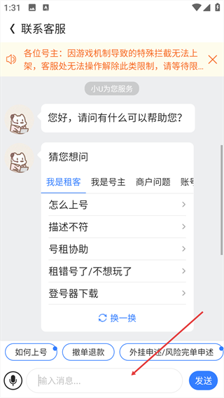 3、在【联系客服】界面,可通过底部输入框编辑咨询内容。