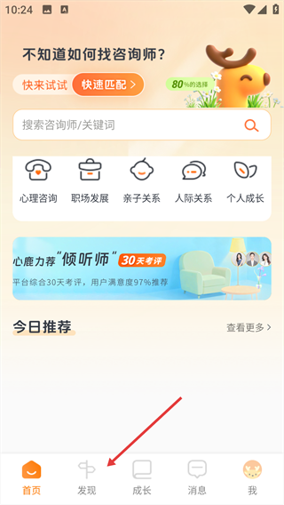 心鹿心理App是一款聚焦心理健康服务的专业平台,汇聚众多心理咨询师,提供一对一私密咨询,保障沟通隐私与权益。平台设有心理学知识库、亲子问题解析及互助广场,帮助各类群体在心理成长与自我认知上获得持续支持。无论是面临情绪困扰还是家庭育儿难题,都能在平台中找到科学的引导与温暖的陪伴,推动心理健康理念深入生活每一处。