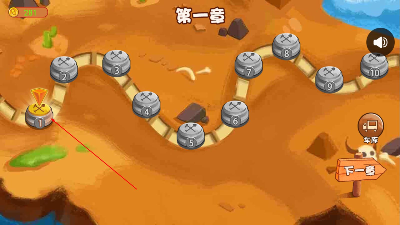 1、打开游戏点击第一章中带有黄色标记的【关卡1】图标,进入第一关。