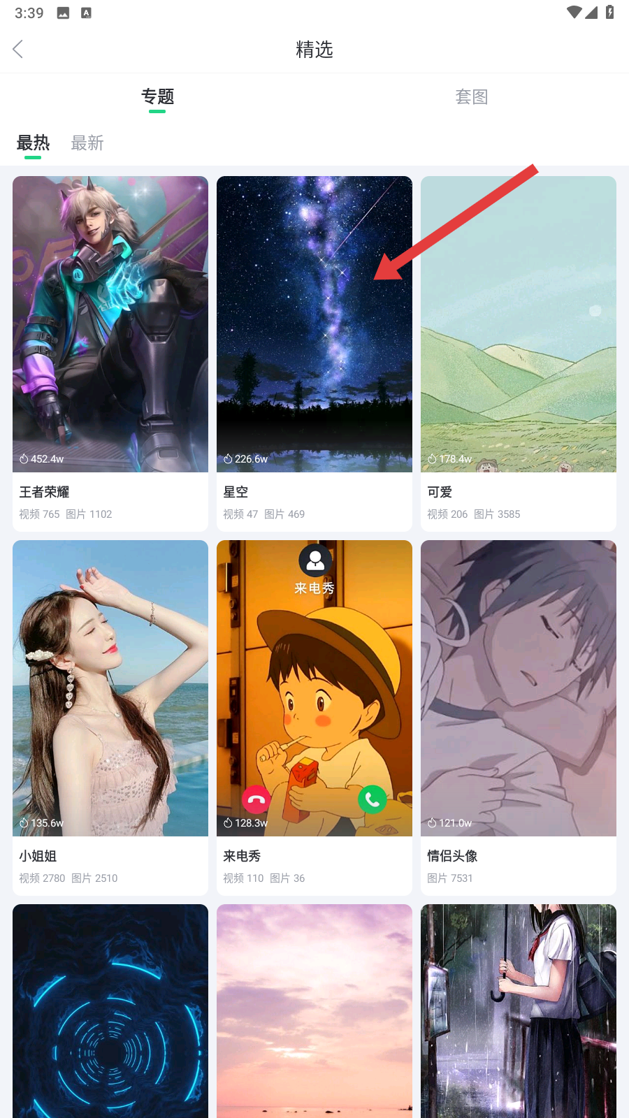 2、在精选专题里,找到并点击喜欢的类别,像【星空】专题就很适合设置成锁屏,点击进入哦。
