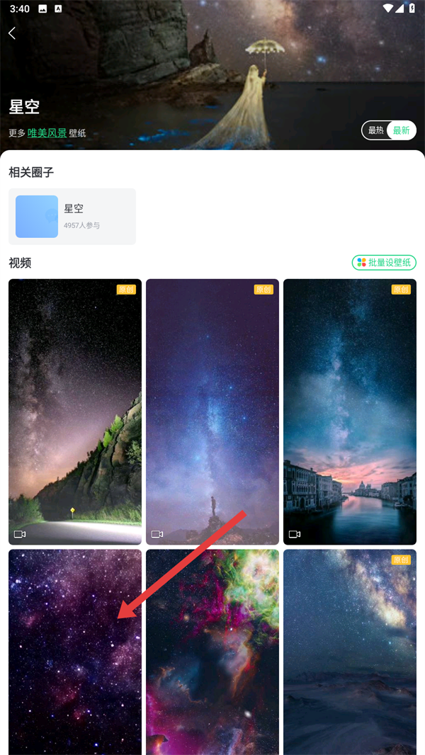 3、进入【星空】专题后,挑选一张心仪的星空壁纸,点击它进入详情页面啦。