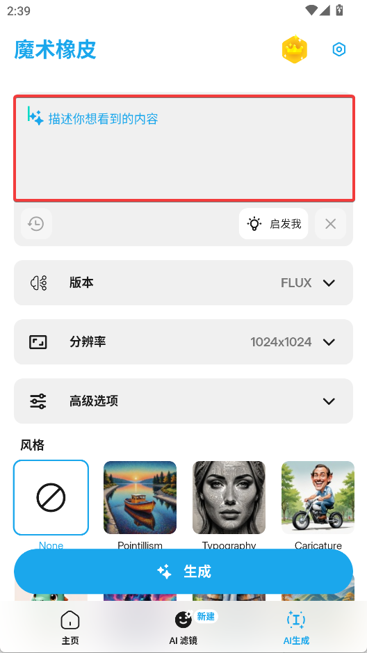 3、选择画面的风格,点击生成后耐心等待