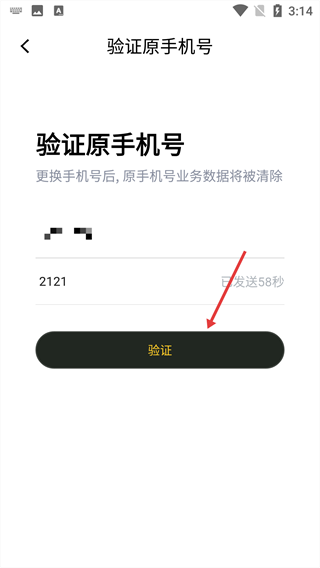 3、填写收到的短信验证码,完成原账号的身份校验。
