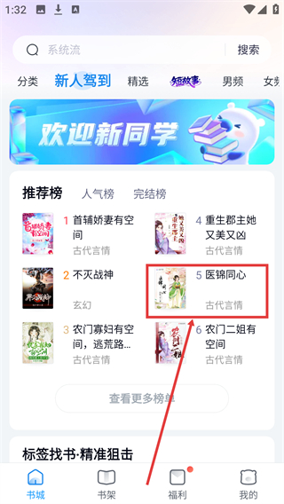 1、在书城推荐榜中,点击【医锦同心】条目,可进入该书的详情页面,查看书籍基本信息。