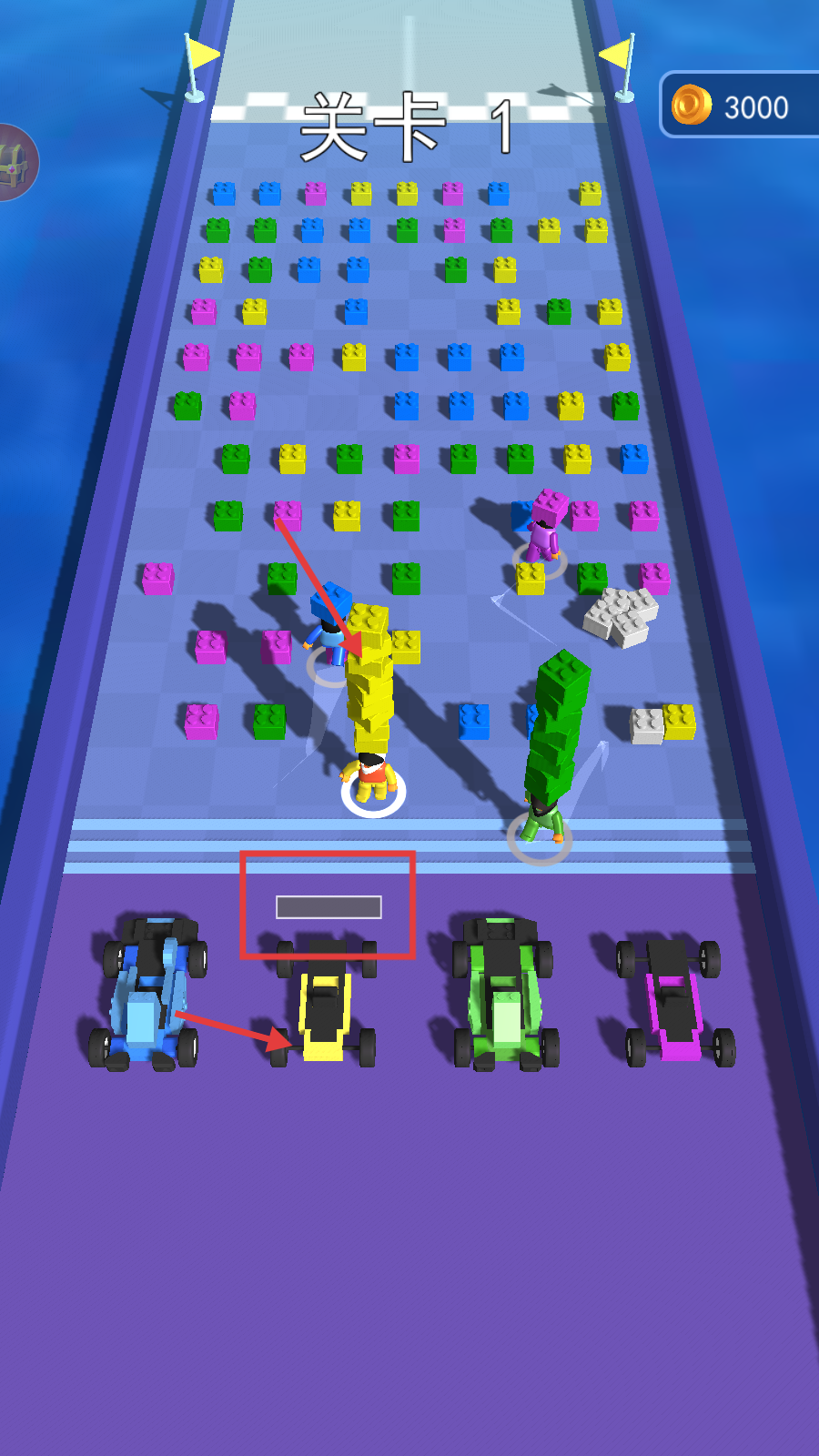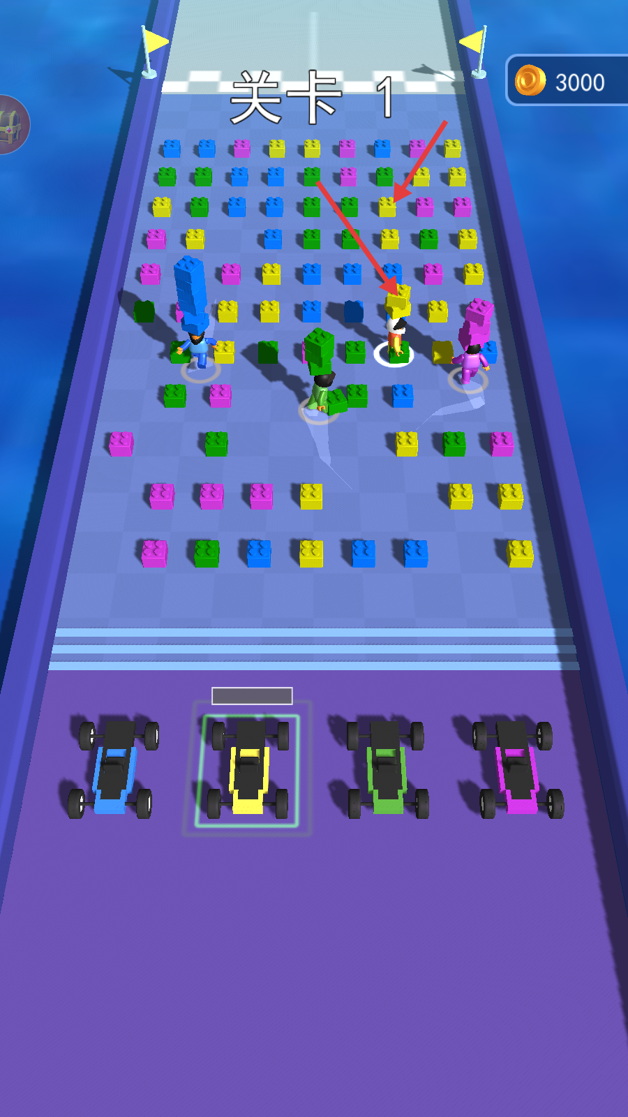 2、在“关卡1”中,收集对应颜色的方块。