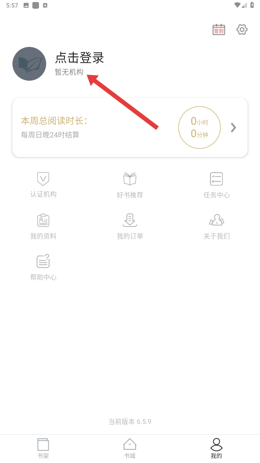 2、在【微书房】个人中心点击【点击登录】,进入登录界面,为注册账号做好准备哦。