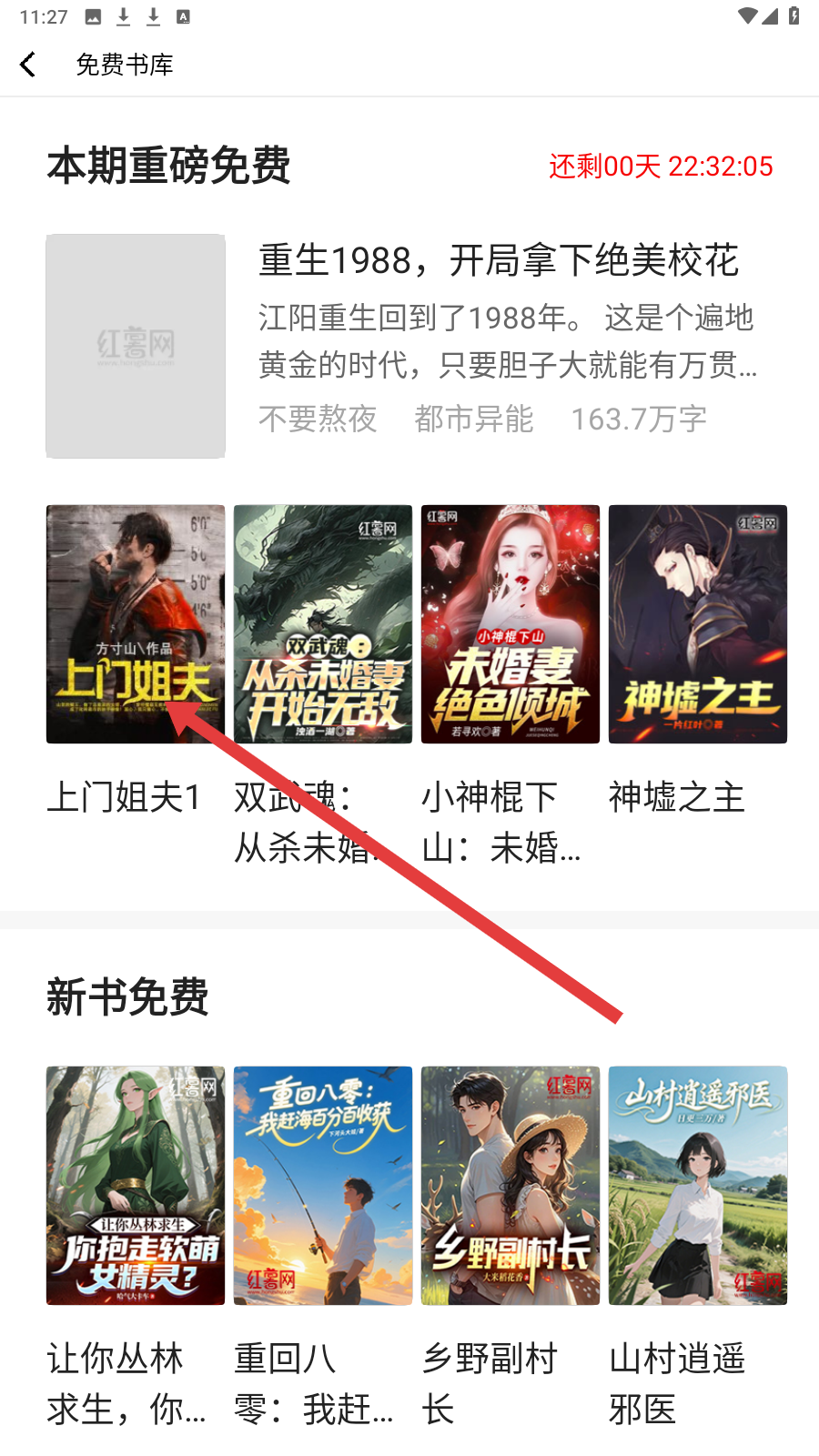 2、在免费书库,选感兴趣的小说如【上门姐夫1】,点封面进详情页。