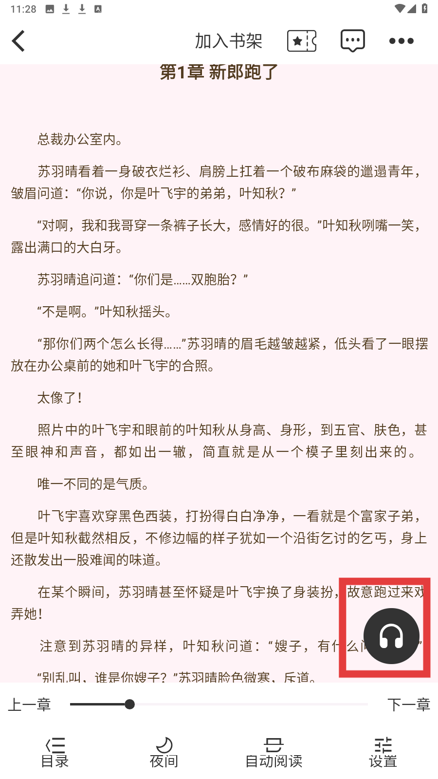 4、阅读页右下角有耳机图标,点它可开启听书功能,收听小说内容。