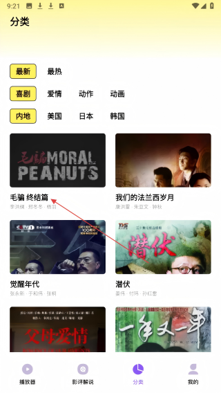 2、分类页选目标影片(如《毛骗终结篇》),进入影片介绍页。