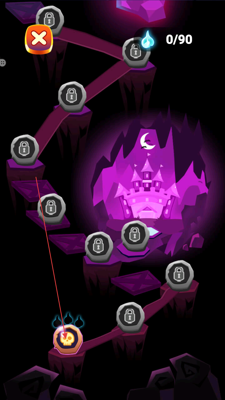 2、卡通风格呆萌:采用超呆萌趣味的卡通风格打造场景与角色,骷髅头形象可爱讨喜,整体画风轻松活泼,让闯关过程充满趣味体验。
