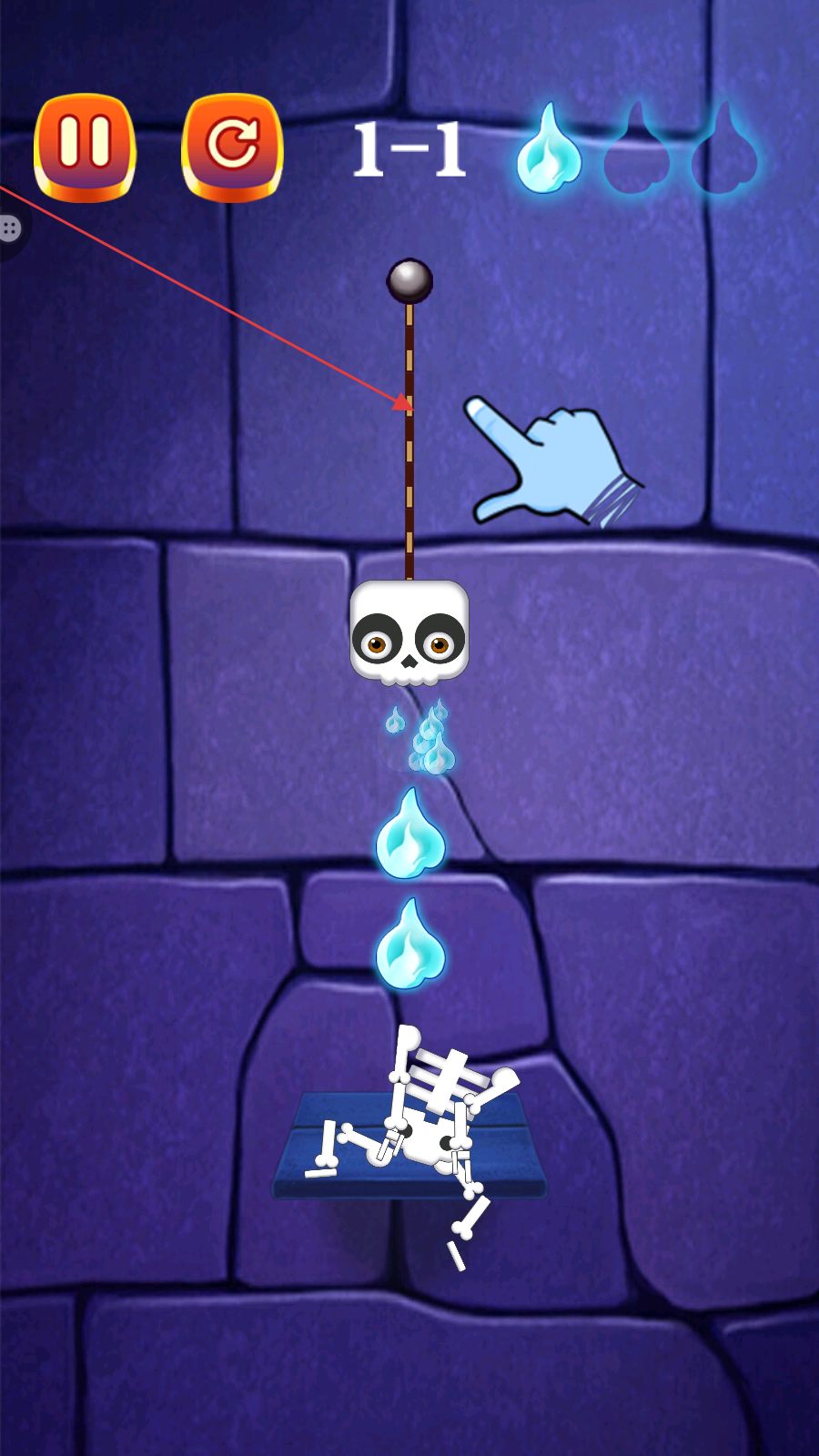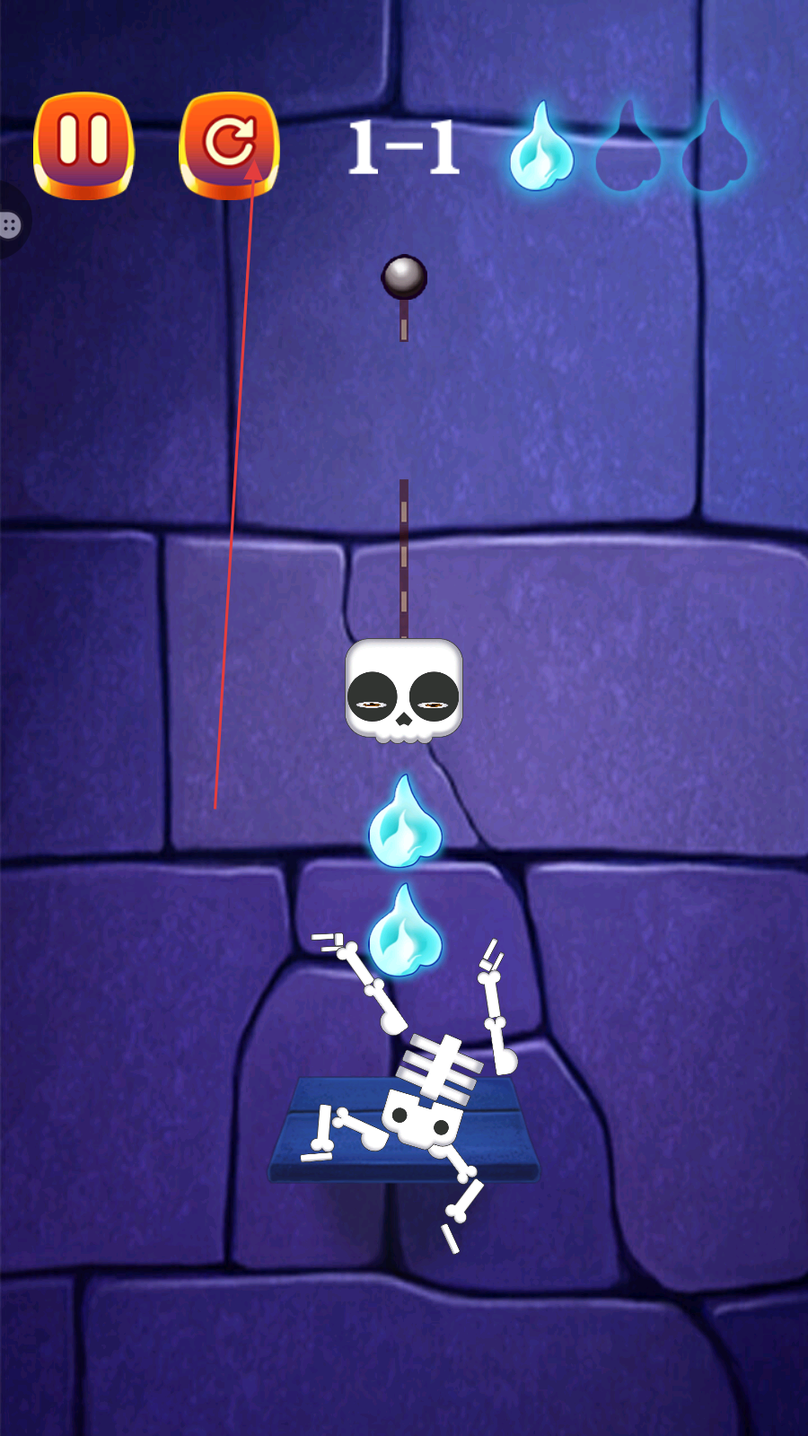3、滑动屏幕切断绳子让头骨收集火焰并与身体连接成功。