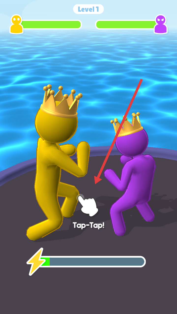 3、到达终点后,与紫色角色进行战斗,点击屏幕Tap-Tap进行攻击,击败对手。