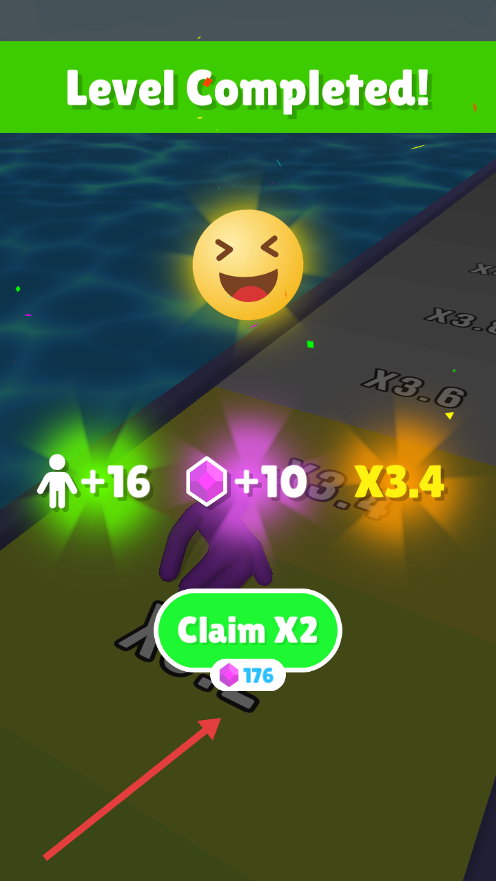 2、在赛道上不断收集绿色小人,增加队伍规模,提升战斗力,为最终战斗做准备。