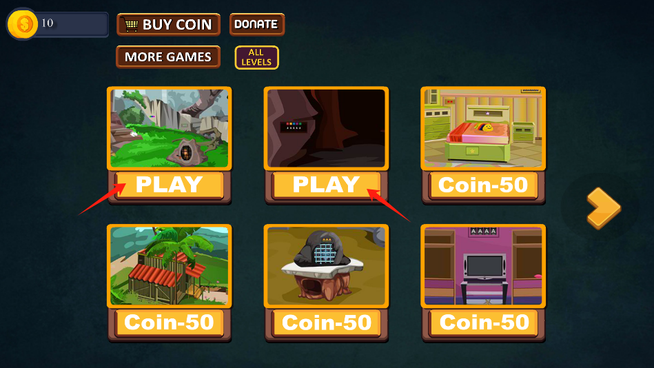 1、打开游戏,选择PLAY的关卡进入,coin-50的关卡,需要花费50游戏币方可解锁。