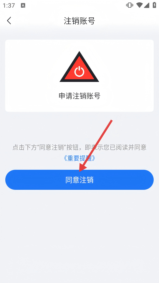 4、进入注销账号页面后,点击【同意注销】按钮,申请注销账号。