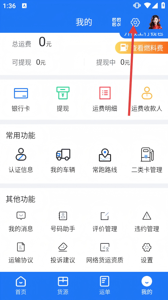 2、在【我的】页面点击右上角齿轮状【设置】图标,进入账户管理界面。