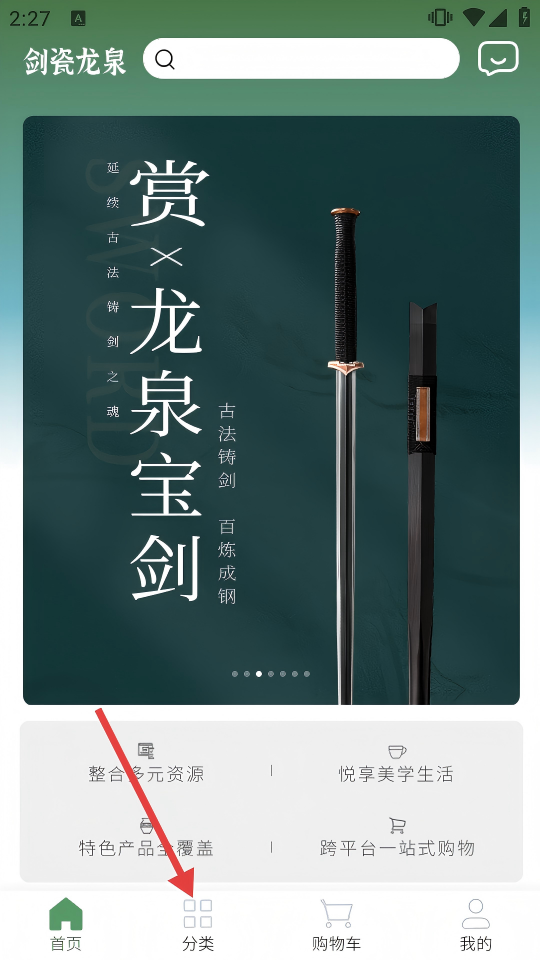 1、首页底部点击【分类】,进入商品分类页面,可浏览龙泉相关商品品类。