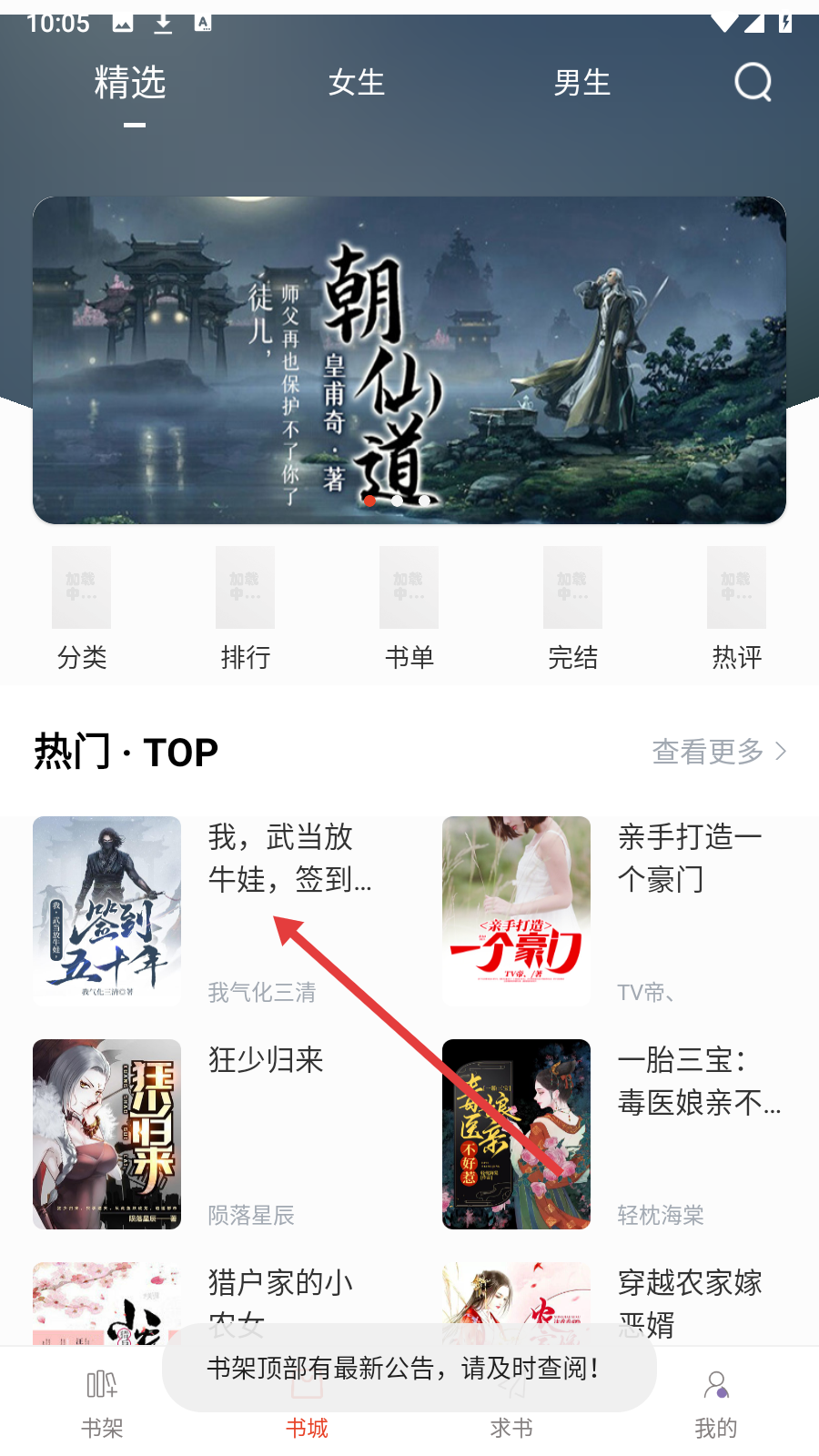 2、在书城选感兴趣书籍,如【我,武当放牛娃】点入。