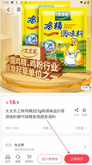 3、商品详情页底部,点击红色【立即购买】按钮,弹出规格确认弹窗。