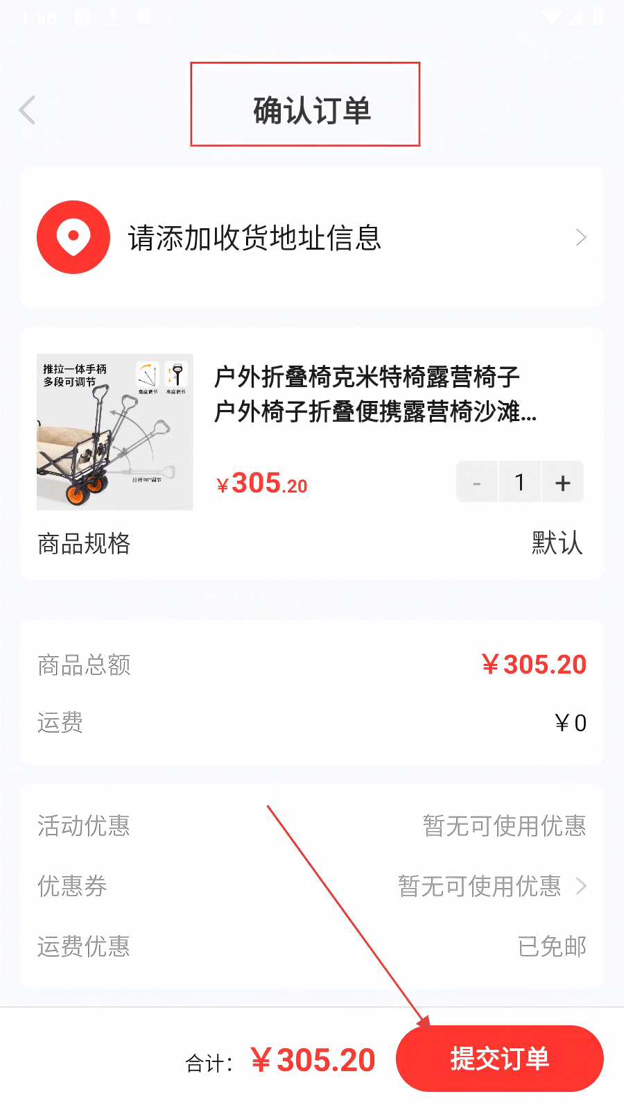 4、在确认订单页,添加收货地址后点击【提交订单】完成购买。