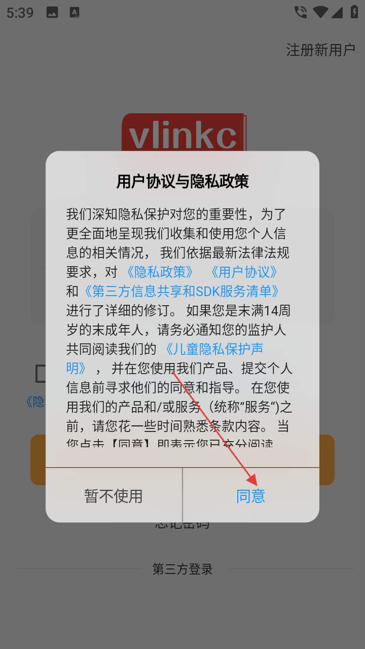 1、使用【微联云智能】前,阅读协议后点【同意】开启服务。
