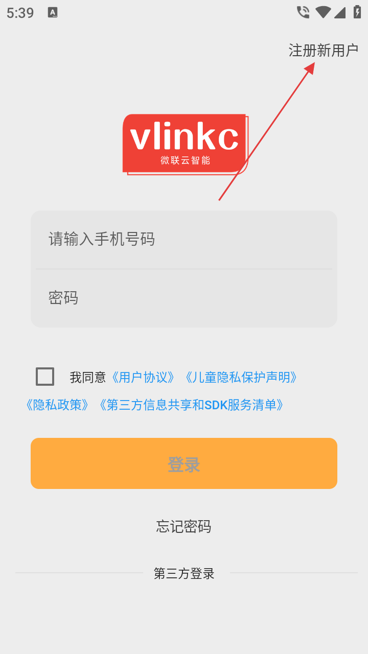 2、登录页想注册新号,点击【注册新用户】进入流程。