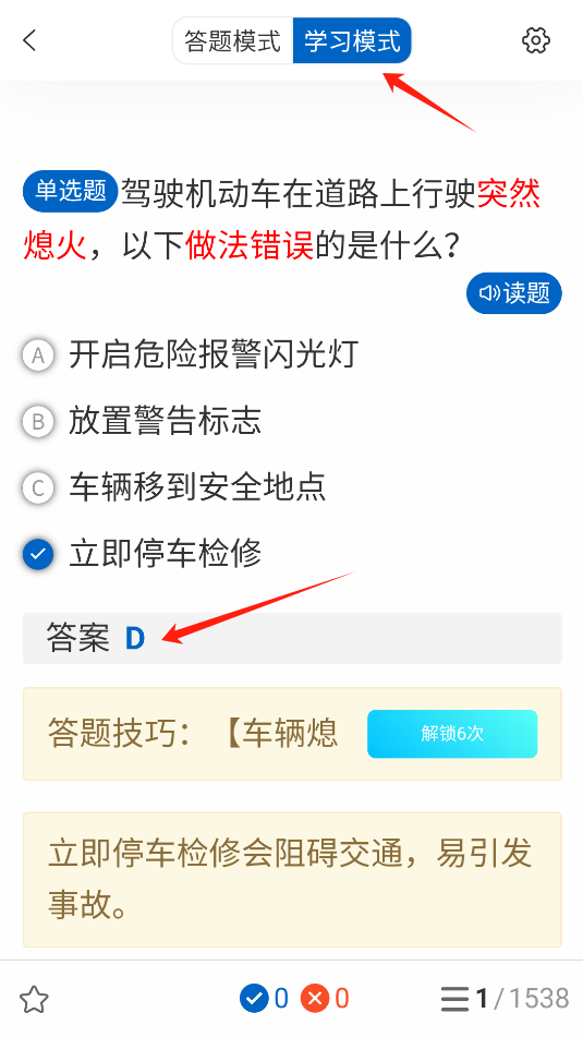 1、模式自由切换,学习答题模式随意选,适配不同学习阶段,灵活掌握驾考知识点。