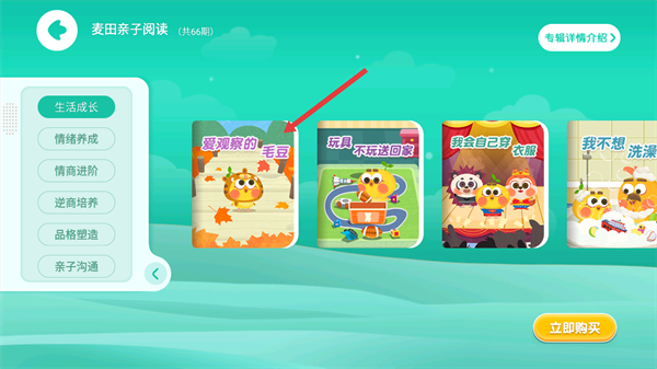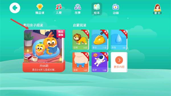 1、进入app主页面,点击“麦田亲子阅读”精品课程卡片。