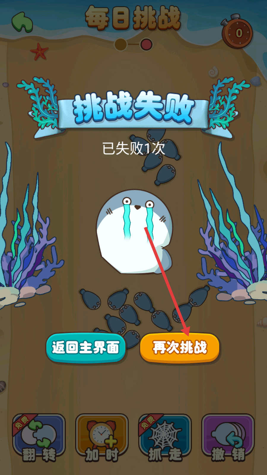 4、若挑战失败,界面显示“挑战失败”,可点击【再次挑战】重新尝试。