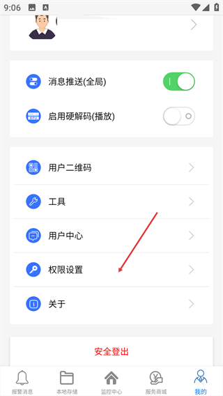 2、在【我的】页面,找到【权限设置】选项并点击进入。
