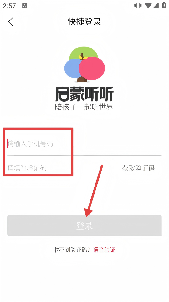 4、手机登录时填写【手机号码】与【验证码】,点击【登录】按钮完成账号登录。