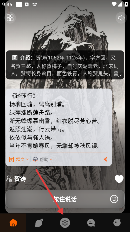 1、进入诗词界面后,点击底部【齿轮】图标,可探索设置功能,调整界面或音效,优化学习体验。
