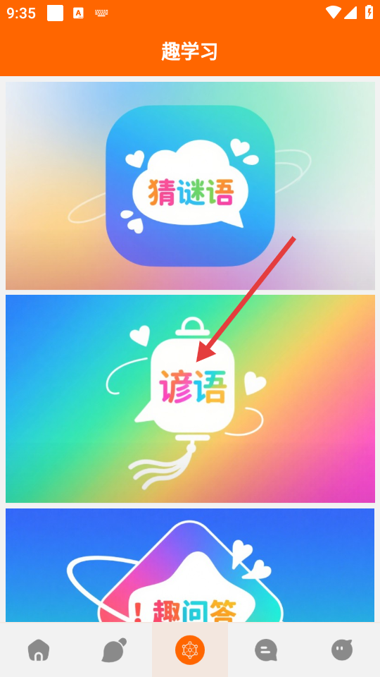 2、在【趣学习】页面,选择【谚语】模块,进入谚语学习场景,开启趣味知识积累之旅。