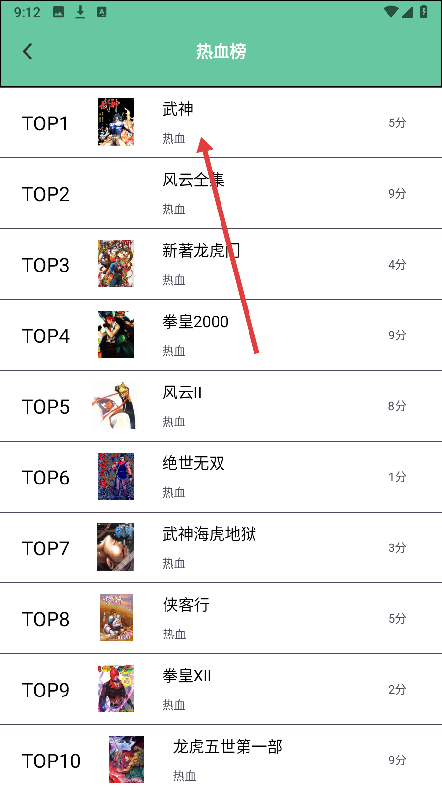 2、漫榜单中选择【热血榜】,查看热血漫画排行情况。