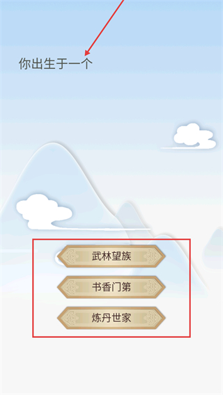 1、初入游戏需选择出身背景,建议根据发展方向选【武林望族】【书香门第】或【炼丹世家】,不同选择影响后续修炼路径。