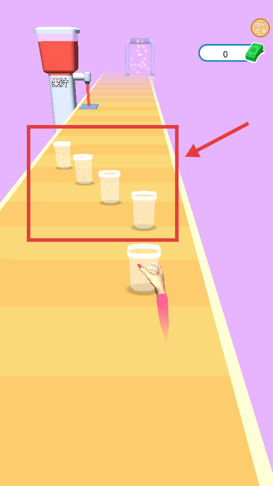 2、在轨道上操控杯子移动,收集多个空杯子。