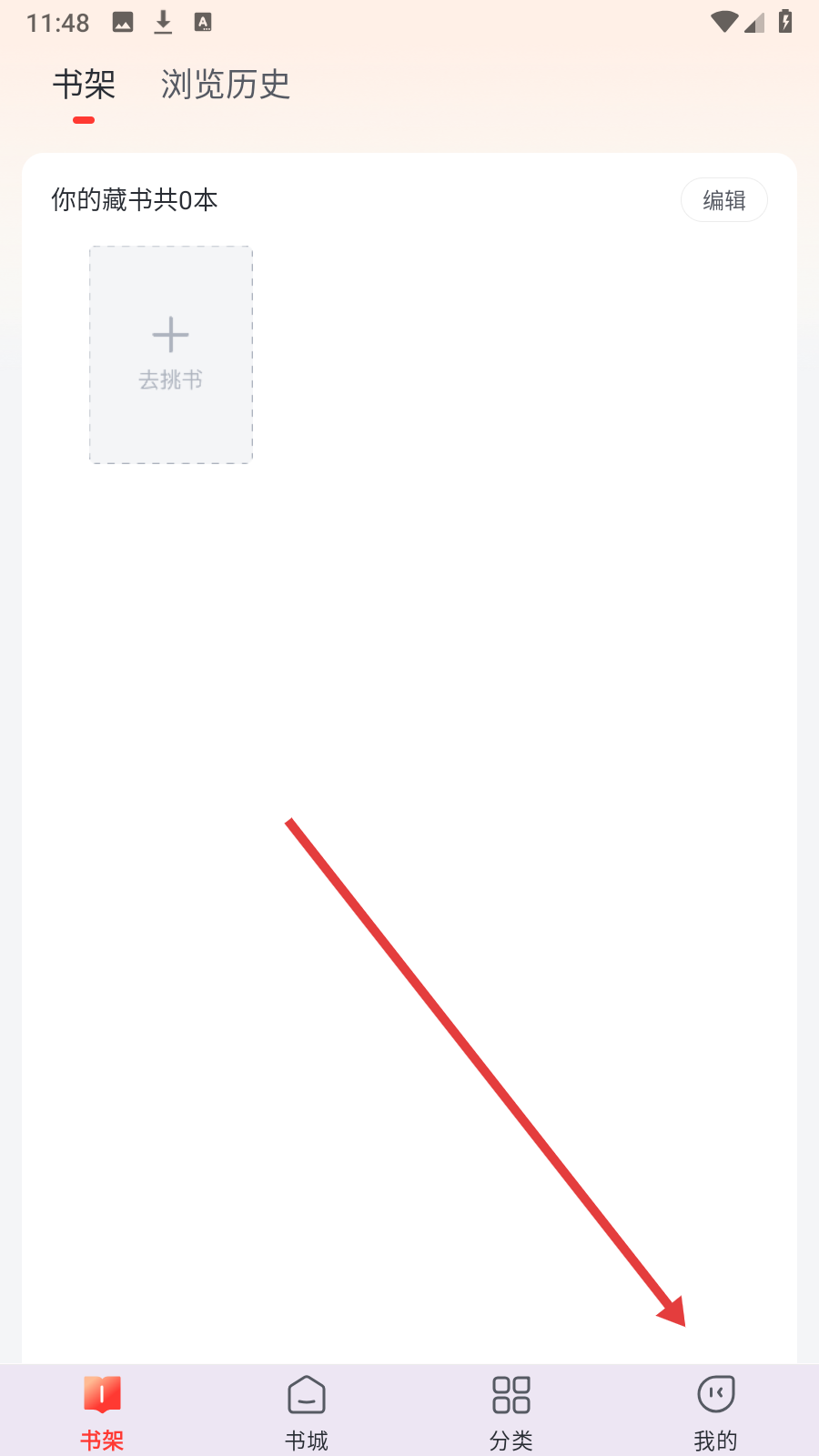 1、在书架页面点击右下角的【我的】,进入个人中心界面。