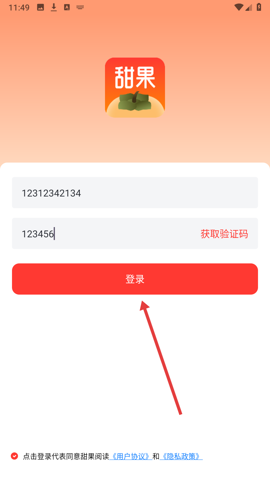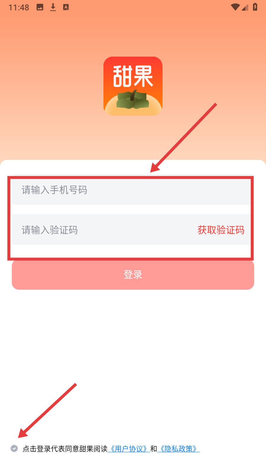 3、在登录页输入【手机号码和验证码】,勾选【用户协议与隐私政策】。