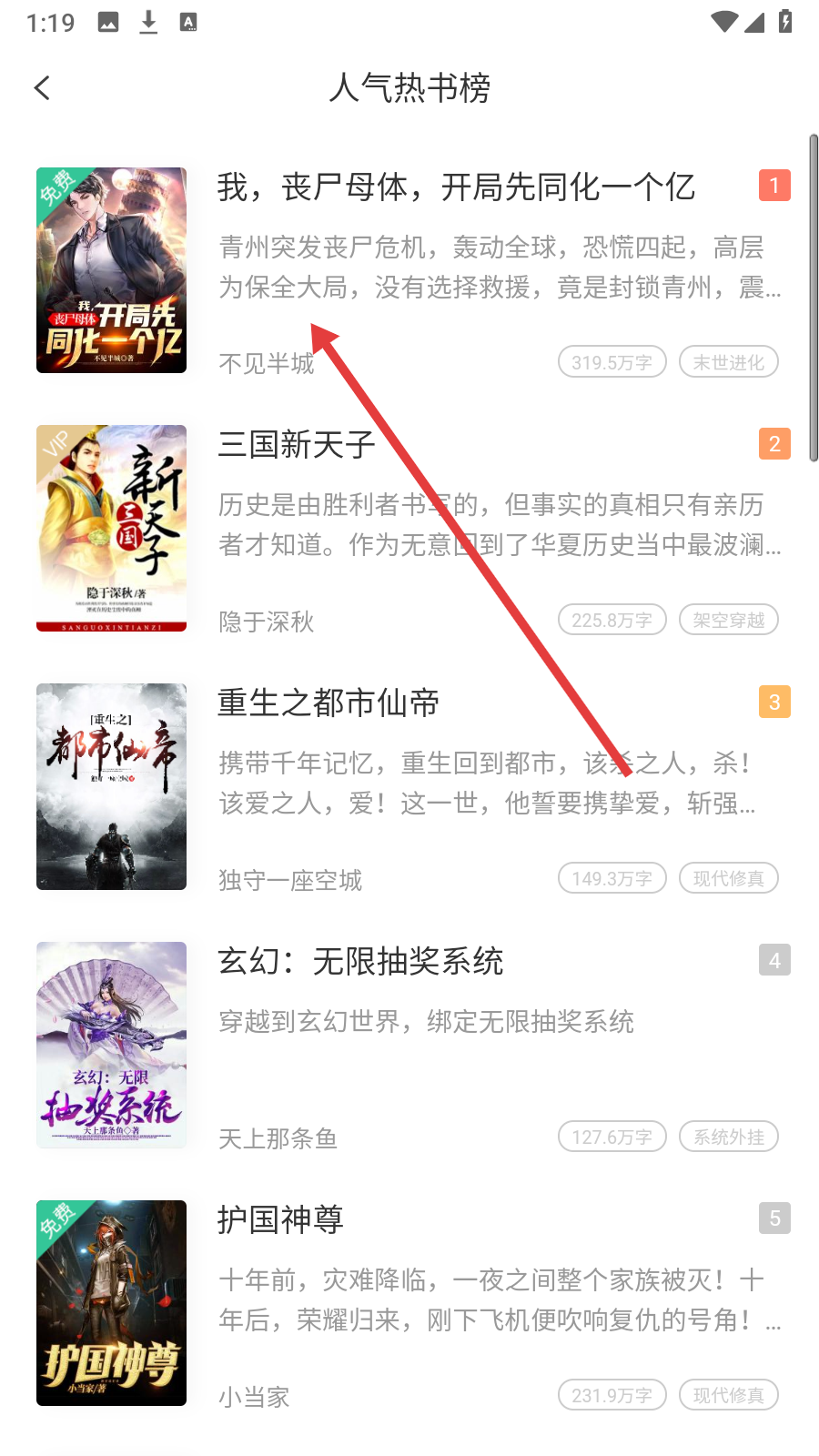 3、在人气热书榜列表,点击【喜欢的书籍】进入详情。