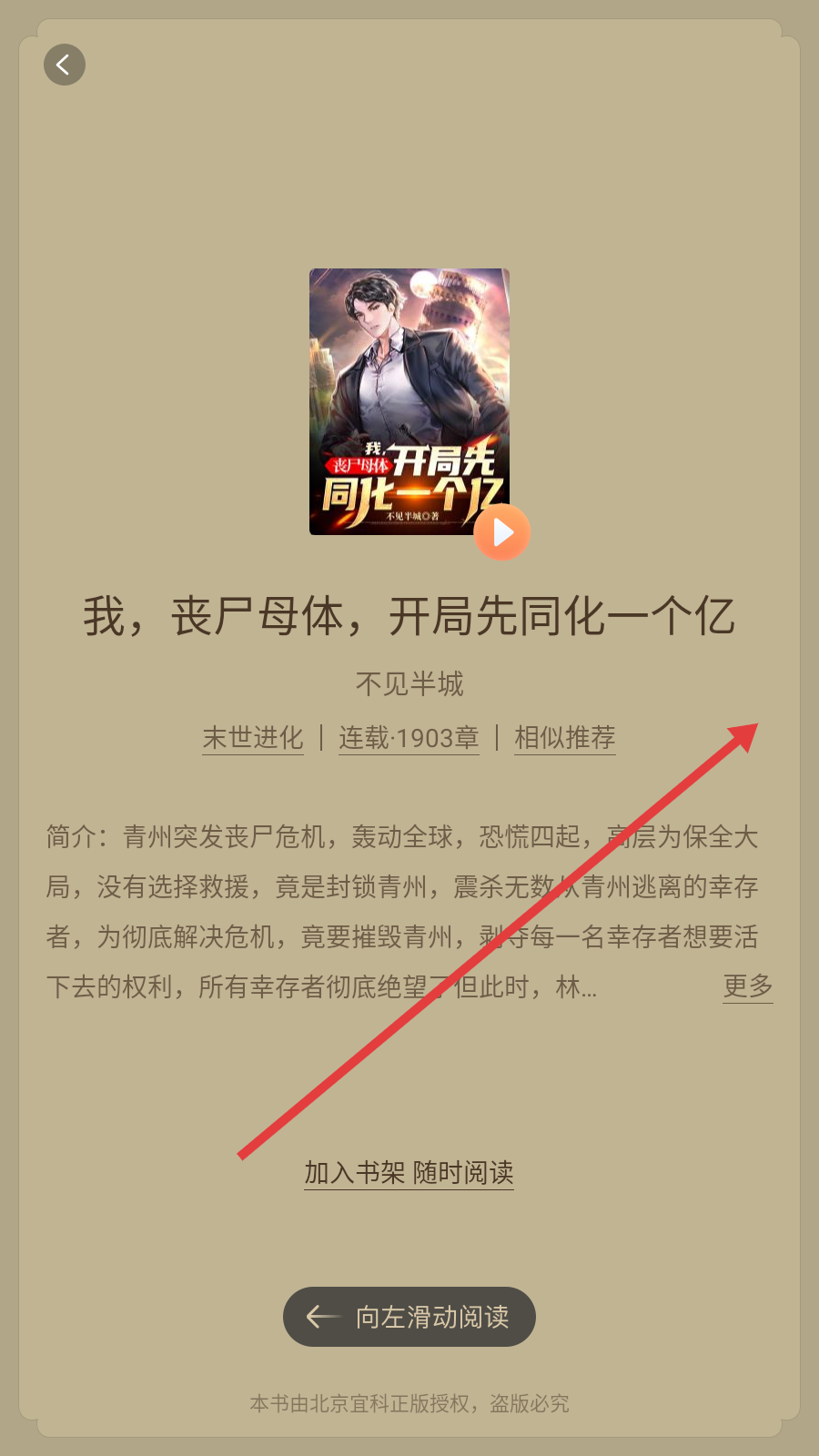 4、进入书籍详情页,点击【右侧区域】即可进入正文页面。